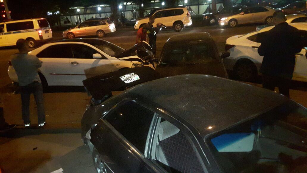 Cо слов очевидцев, водитель Mercedes двигался по Сатпаева в западном направлении, когда решил сделать левый поворот на улицу Ауэзова. Однако в этот же момент по Ауэзова двигалась автомашина Toyota Camry. В результате удара последнюю откинуло на три припаркованные машины у обочины. Жертв и пострадавших нет. Выяснением всех обстоятельств аварии занимается ДВД Алматы.