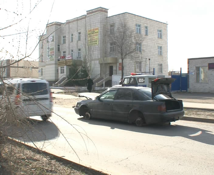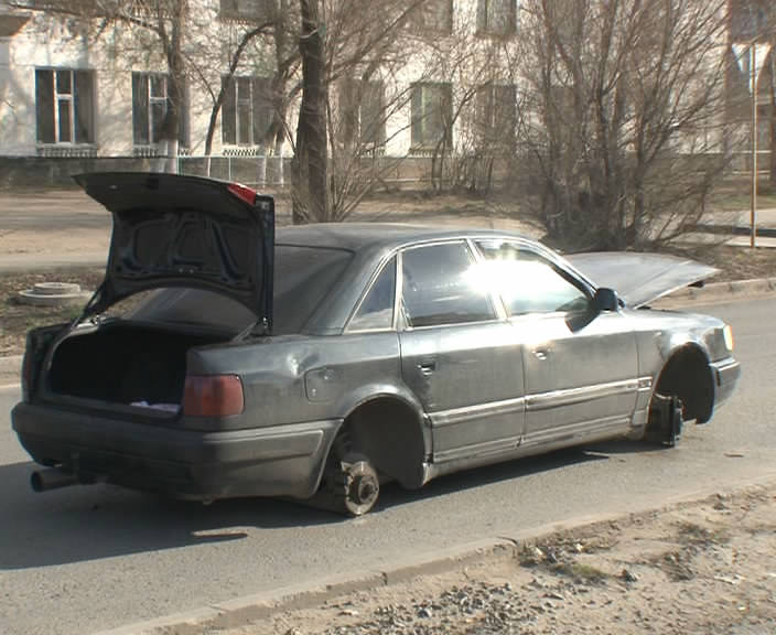 Сегодня павлодарцы наблюдали необычную картину на дороге на улице Пахомова. На проезжей части стояла иномарка с выкрученными колесами и выбитыми стеклами. По словам очевидцев, автомобиль угнали из близлежащего гаражного кооператива.