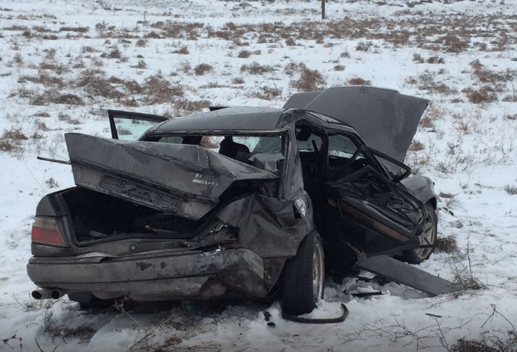 Столкнулись автомобили марок Mercedes-Benz и Volkswagen Passat. Очевидцы рассказывают, что «Мерседес» занесло на скользкой дороге, он выехал на встречную полосу и на большой скорости врезался в боковую часть «Фольксвагена». От удара «Мерседес» развернуло и выбросило в придорожный овраг, передает Total.kz со ссылкой на Otyrar.kz.