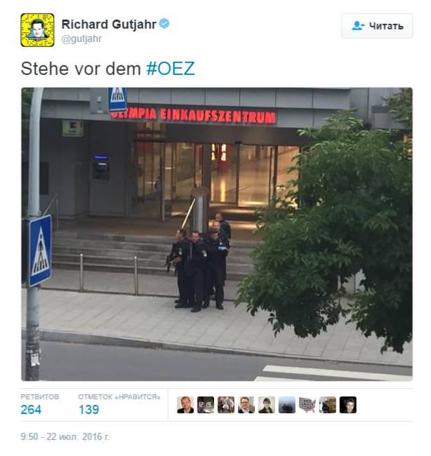 РИА Новости со ссылкой на СМИ сообщают, что в результате стрельбы в торговом центре Olympia погибли 15 человек. Представитель Olympia не комментирует ситуацию, но сообщает «о возникновении проблемы». Мюнхенское транспортное общество приостановило движение в метро по нескольким маршрутам.