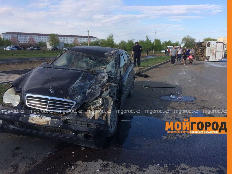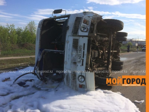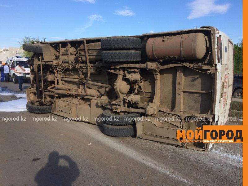 В Уральске опрокинулся пассажирский автобус. ФОТО