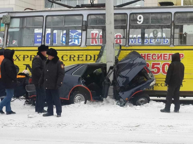 В Усть-Каменогорске трамвай разрубил автомобиль на две части