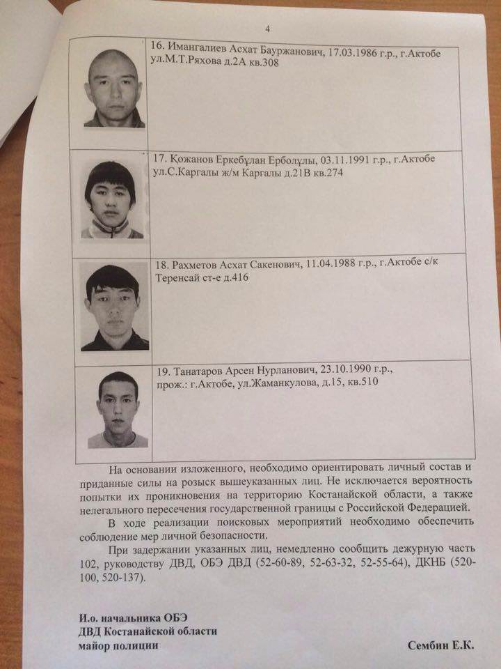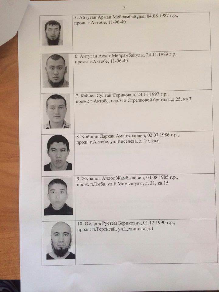 Всего в списке 19 лиц. Однако в версии в Whatsapp отсутствует третий лист, где размещена информация о шести подозреваемых в перестрелках в Актобе.