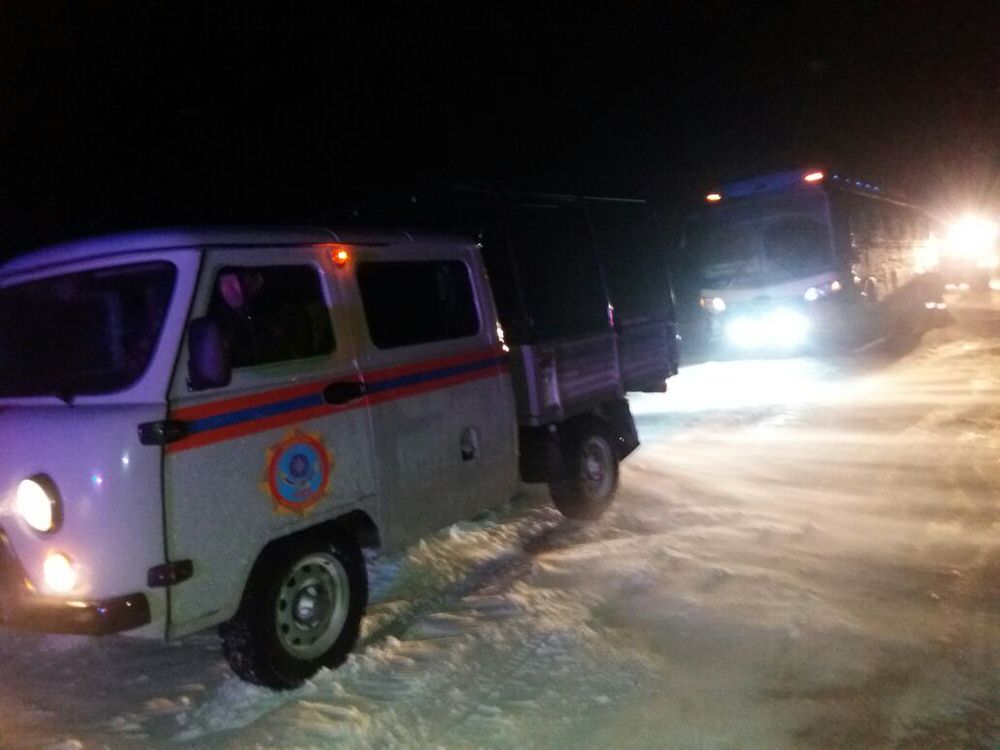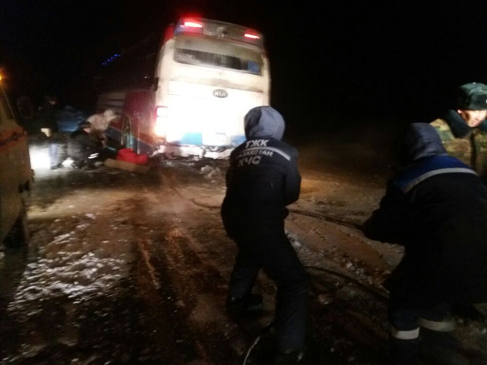 Спасателями Восточно-Казахстанской области в 7 и 40 км от Семея из остановившихся в снежных переметах трех автобусов и трех автомобилей эвакуировано 64 человека.