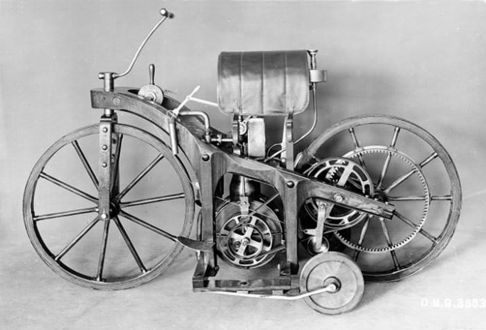 Первую поездку на первом в мире мотоцикле совершил сын Готтлиба Даймлера, он «промчался» на участке в три километра от города Бад-Каннштатт в Унтертюркхайм (пригород Штутгарта).