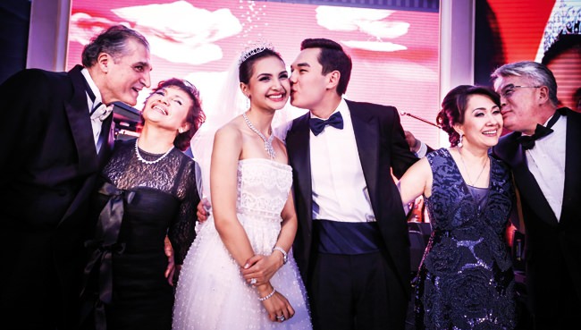 На фото (слева направо): Роберт Дженейд и Разиях Бинти Махмуд, Алия Дженейд и Диас Атамкулов, Багила Сапарбаева и Бейбут Атамкулов (источник: www.my.asiatatler.com)