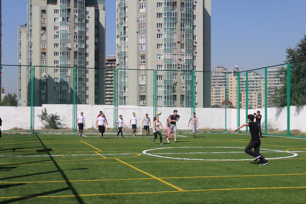 На фото: Об этом спортивном комплексе для школы-интерната №9 в Алматы пишет в своем посте Марат Жыланбаев (источник: www.vesti.kz)