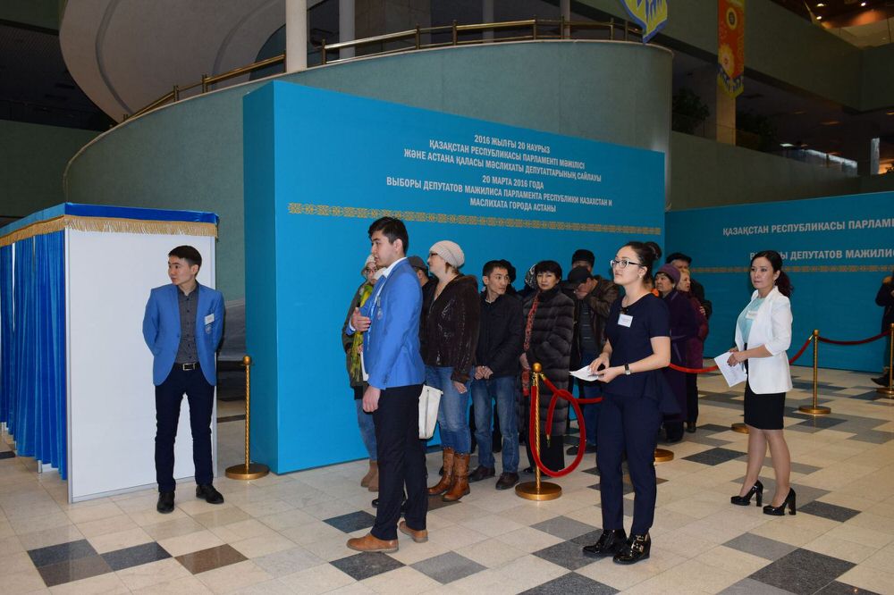 С раннего утра на избирательном участке №81 г.Астаны, который находится во Дворце школьников, царит оживление. В жилом районе, где расположены новостройки, много молодых семей, поэтому отдать свой гражданский долг идут даже с младенцами.