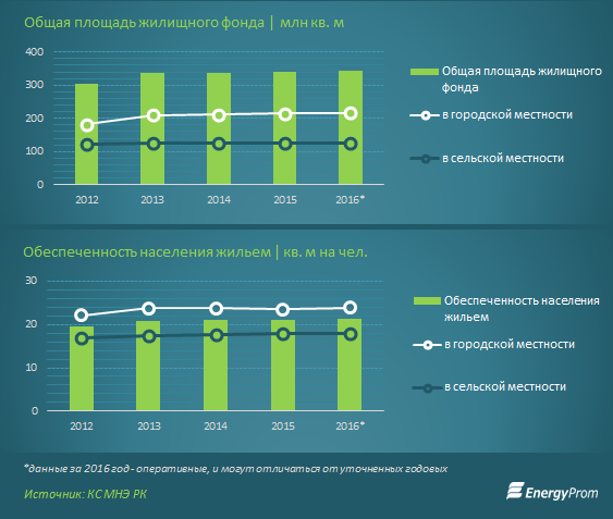 По итогам прошлого года общая площадь жилищного фонда увеличилась год к году на 0,8% (причем в городской местности - на 1,1%, в сельской - на 0,3%) и достигла 343,4 млн кв. метров.