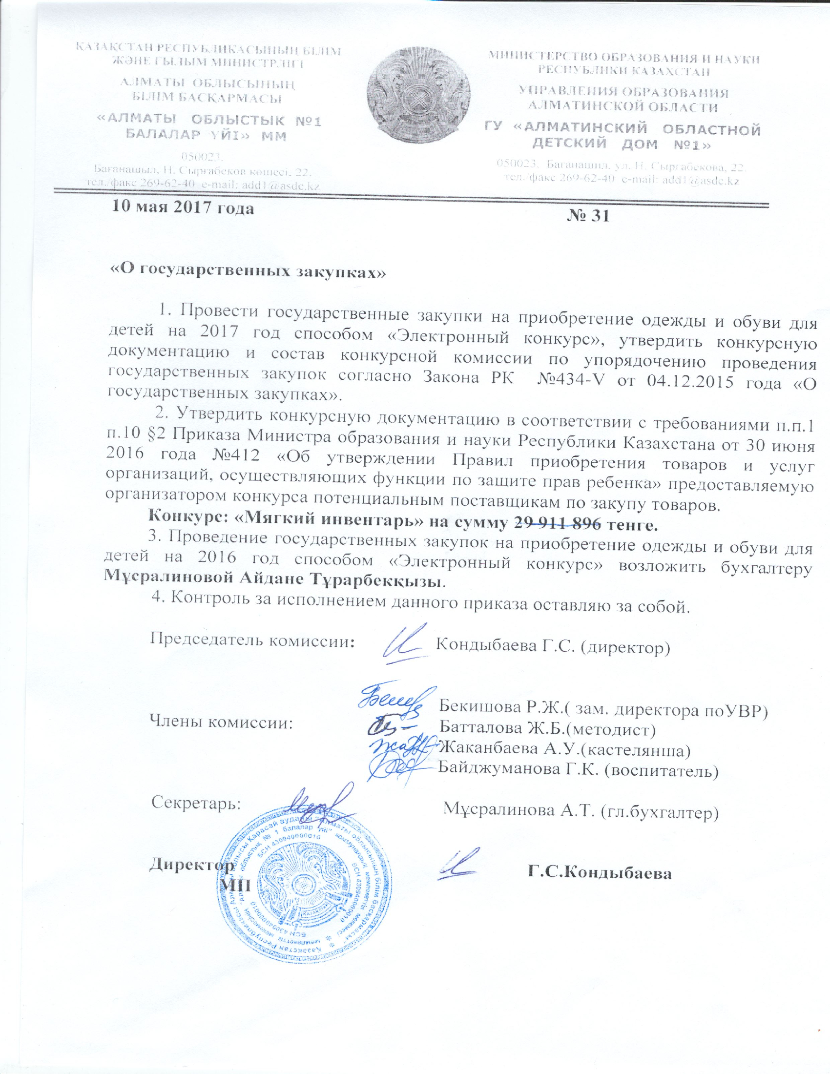 Правда, когда появилось объявление – неизвестно, нет даты. Стоит отметить, что согласно приказу №31 от 10 мая 2017 года общая сумма закупок составляет 29 911 896 тенге, а по конкурсной документации – 32 604 120 тенге.