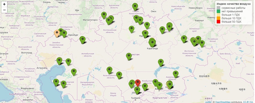 «Эти карты созданы для обеспечения открытого доступа населения к экологической информации о состоянии окружающей среды. Проект осуществлялся «Казгидромет» совместно с Министерством экологии, геологии и природных ресурсов. Карты обновляются каждые три часа и дают информацию о качестве атмосферного воздуха и поверхностных водных объектов в Казахстане. Обновление показателей осуществляется с помощью мобильного приложения «AirKZ». К примеру, наблюдение за состоянием атмосферного воздуха на территории РК ведется в 45 населенных пунктах на 140 постах», — сообщили в РГП «Казгидромет».